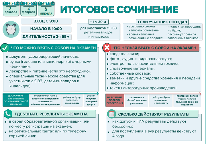 Памятка о порядке проведения итогового сочинения (изложения) для ознакомления обучающихся и их родителей (законных представителей)